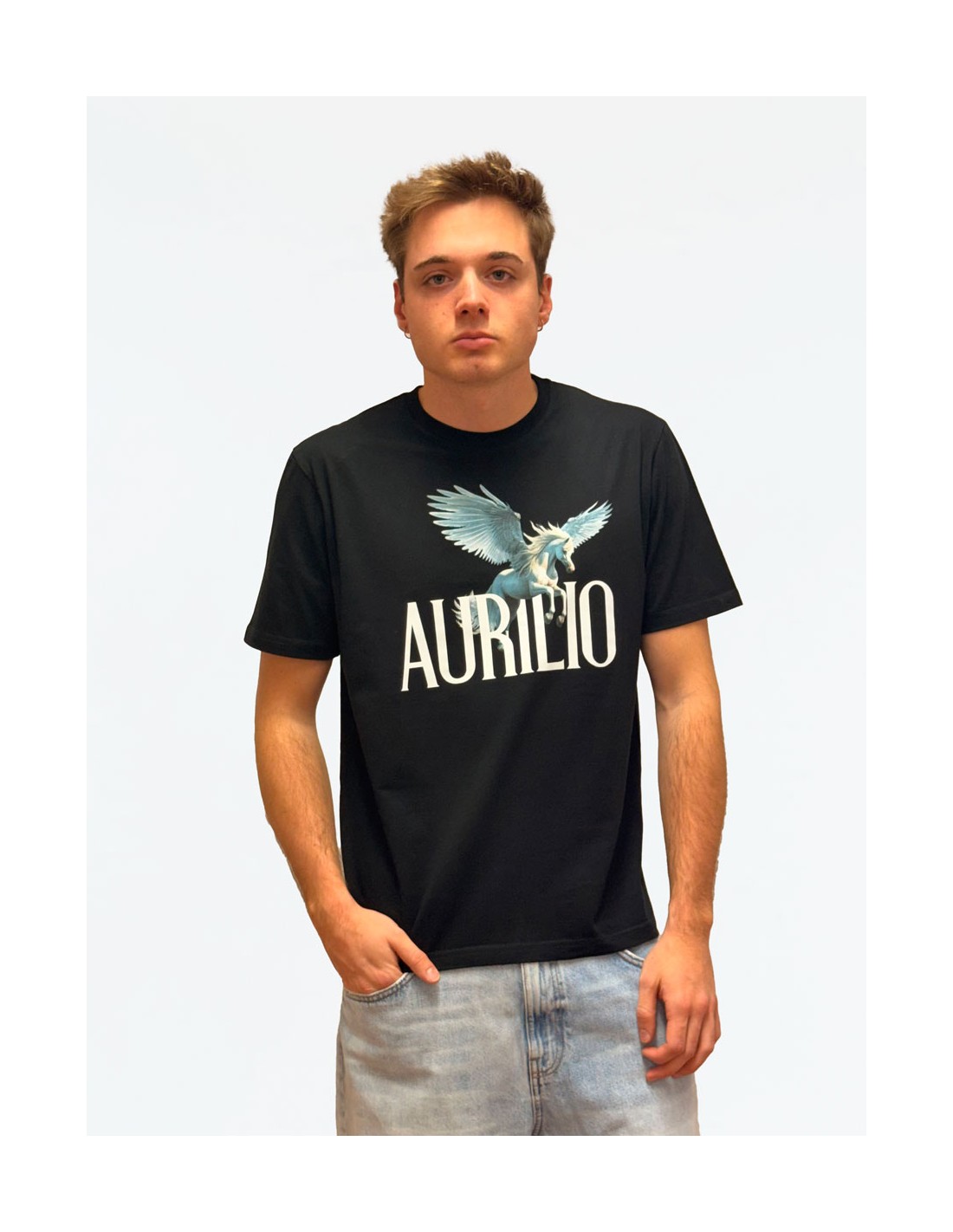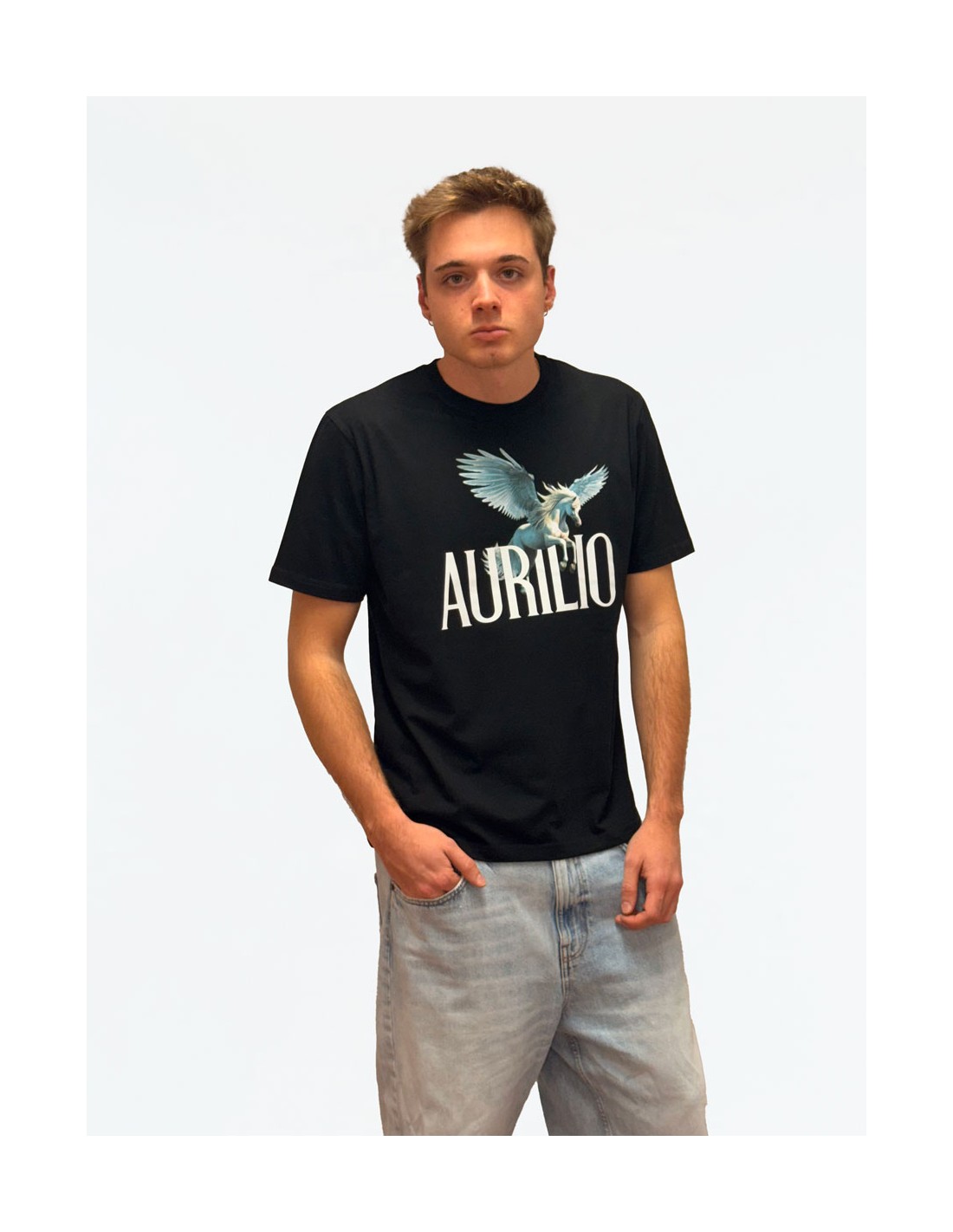 T-shirt unisex in 100% cotone (Baumwolle) con stampa “Aurilio Pegasus”, simbolo di libertà e forza interiore.